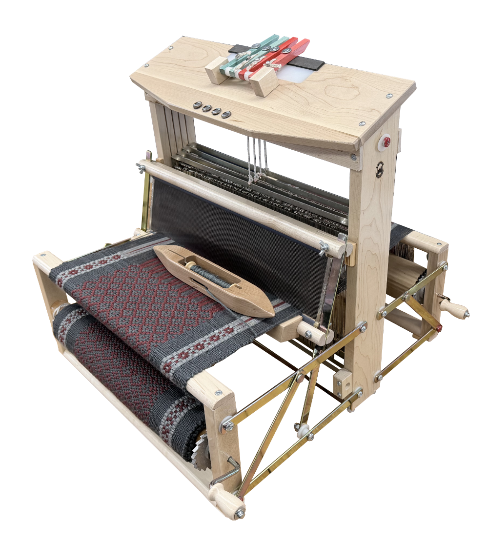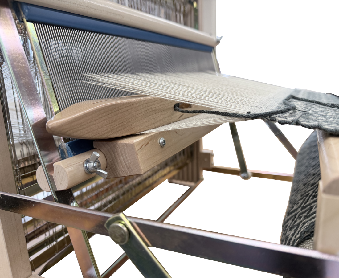 The Voyageurs are set up with Levers starting with #1 on the right (standard). If you prefer we can set your loom up with #1 Lever starting on the left at no extra charge. In addition for those who choose, Texsolv Heddles and the Swinging Beater are available at no extra charge.